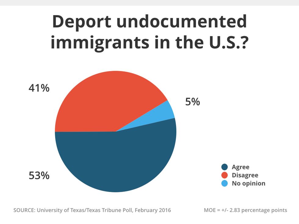 Almost half of the state’s voters support banning non-U.S. Muslims from entering the country, and more than half support immediate deportation of undocumented immigrants now living in the United States, according to the latest University of Texas/Texas Tribune Poll.