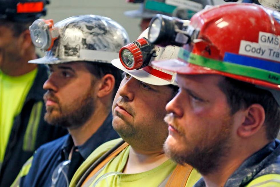 Coal miners in Pennsylvania in April listen to Scott Pruitt, head of the Environmental Protection Agency.