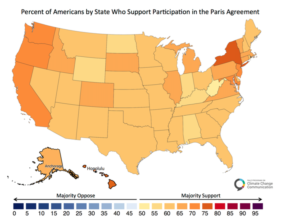 We have also found that a majority of Americans in all 50 states say that the U.S. should participate in the Paris climate agreement.