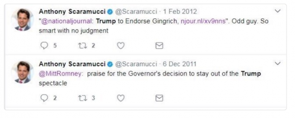 Writing on Twitter, Scaramucci stated, "Full transparency: I'm deleting old tweets. Past views evolved & shouldn't be a distraction. I serve @POTUS agenda & that's all that matters."