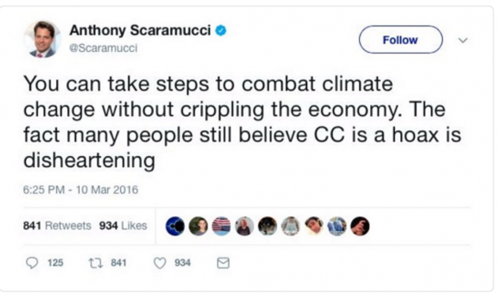 Along with tweets advocating for tougher gun control, Scaramucci also took some shots at Trump over the years (see below) and climate change deniers: