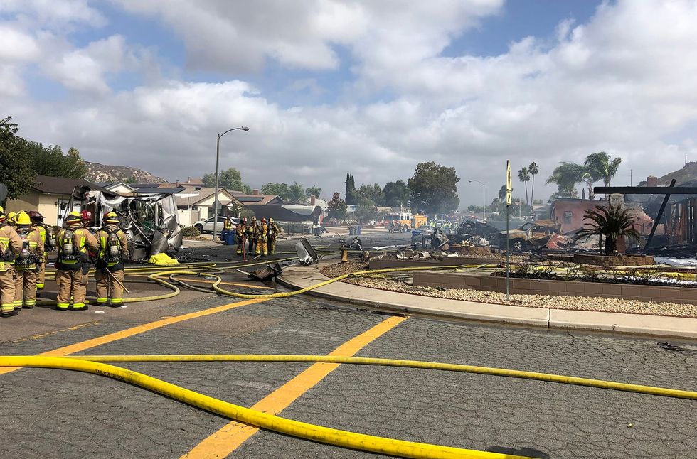 Emergency personnel work the scene of a twin-engined plane crash in Santee on Monday, October 11, 2021. - K.C. Alfred/San Diego Union-Tribune/TNS