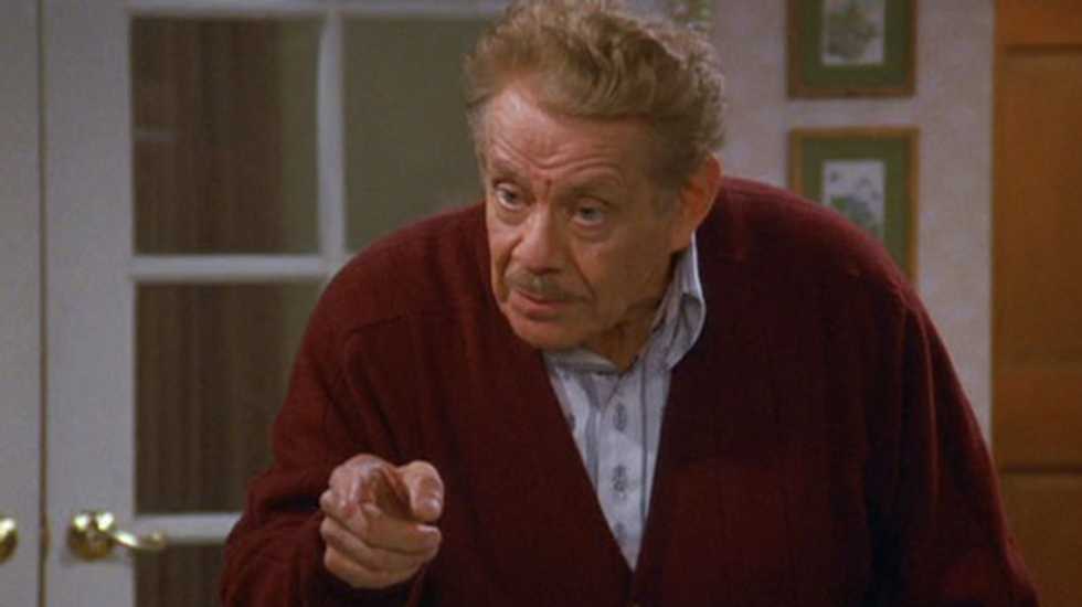 “Many Christmases ago, I went to buy a doll for my son,” he tells Kramer. “I reach for the last one they had — but so did another man. As I rained blows upon him, I realized there had to be another way!” So he invented another tradition, “a Festivus for the rest of us!”