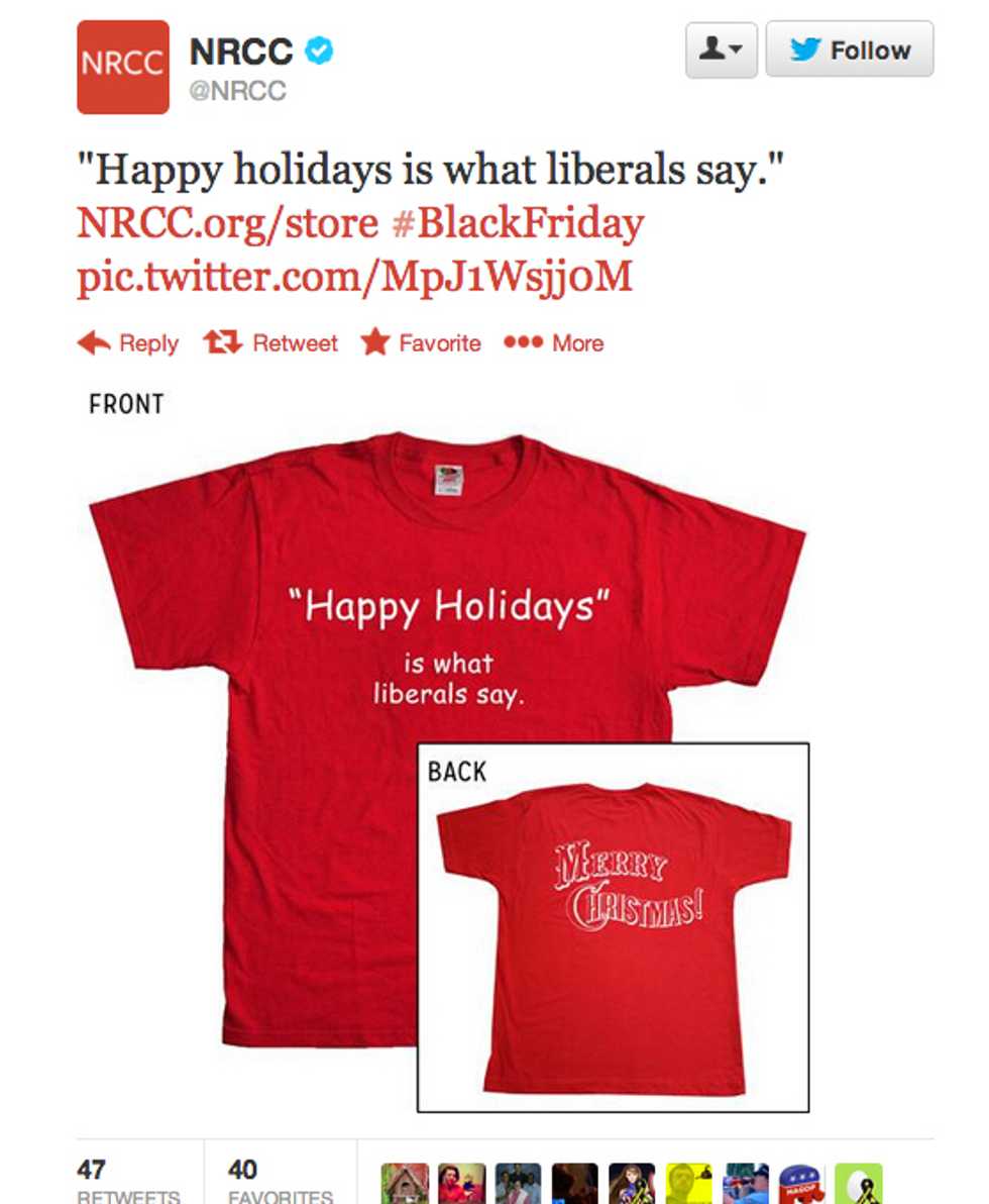 So the NRCC got caught selling T-shirts that only really make sense if you believe that being a non-Christian is a terrible thing to be and so evil, in fact, that being nice to non-Christians is obviously wrong.