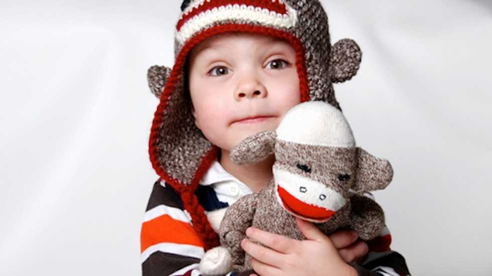 [Image: I'm a sock monkey too! 4-year-old with his favorite sock monkey via Shutterstock]