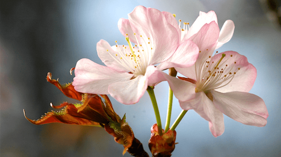 Botanist Takao Yoshimura was able to sprout one of those pits by covering the soil with sphagnum moss, and the young tree has grown in just four years to more than 13 feet tall and this spring produced 10 buds – all of which bloomed by Friday.