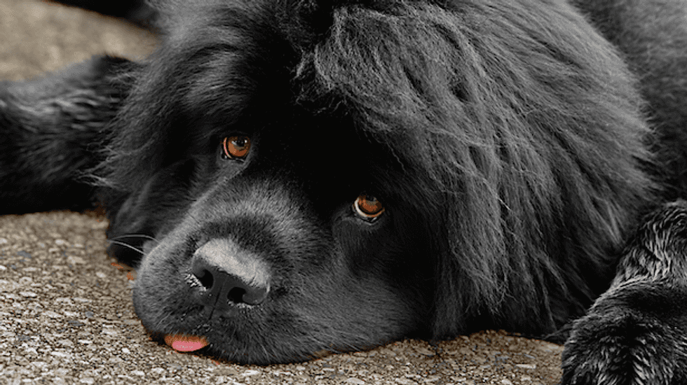 [Image: A tired and sweet newfoundland dog looks up to the camera via Shutterstock]