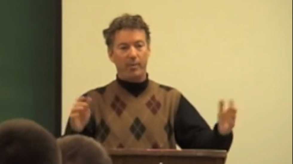 In the video, discovered by David Corn at Mother Jones, Paul can be seen standing at a lectern describing Cheney's opinion in 1995, when he said that invading Iraq would be, "a disaster, it would be vastly expensive, it'd be civil war, we would have no exit strategy."