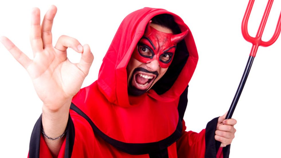 ["Man Devil In Red Costume" on Shutterstock]