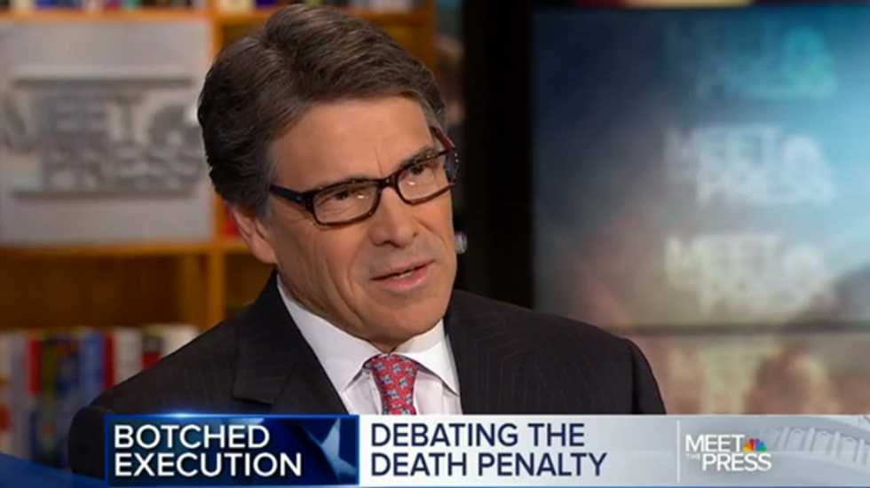Appearing on Meet The Press Sunday morning, Texas Gov. Rick Perry called the disastrous attempt to execute Oklahoma death row inmate Clayton Lockett earlier this week "botched" but refused to say if it should be called "inhumane."