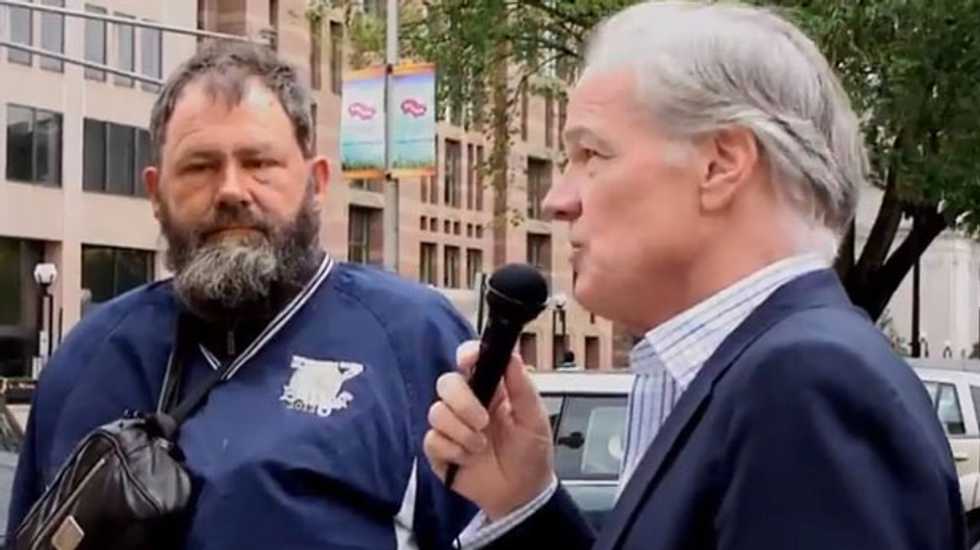 Foley's film crew captured a one minute and 36-second interview with resident Jerry Buchanan who complained about "the damn liberals who want to tax people to death," before endorsing Foley over sitting Gov. Dannel P. Malloy.