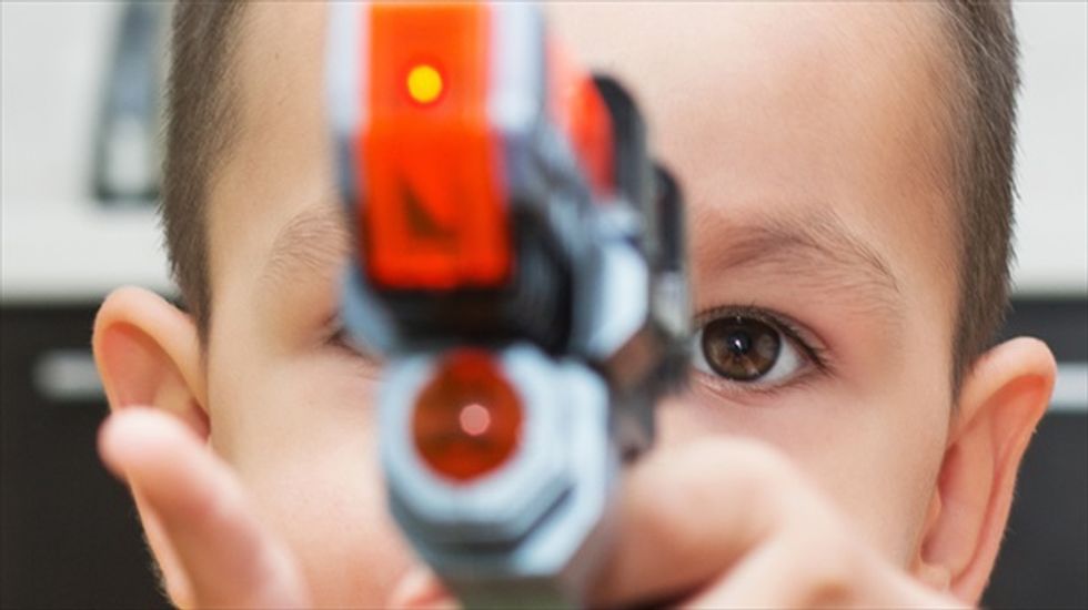 'Little Boy Shooting A Toy Gun' [Shutterstock] https://tinyurl.com/k29cqve