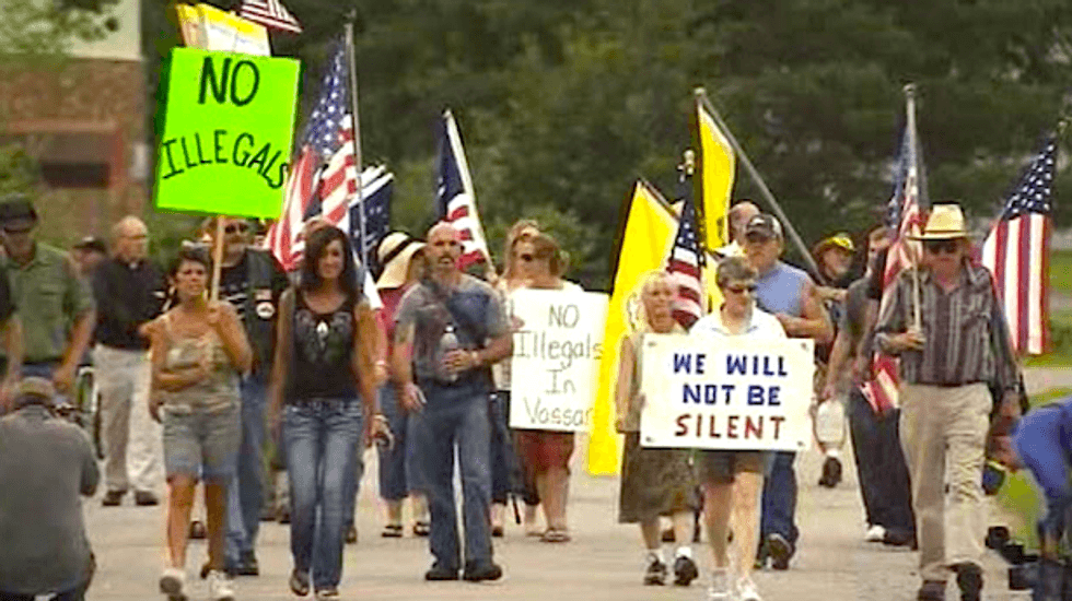 They marched from Vassar City Hall to Wolverine Human Services' Pioneer Work and Learn Center, where 12- to 17-year-old boys from Honduras, El Salvador, and Guatemala could be housed until their immigration cases could be heard, reported The Saginaw News.