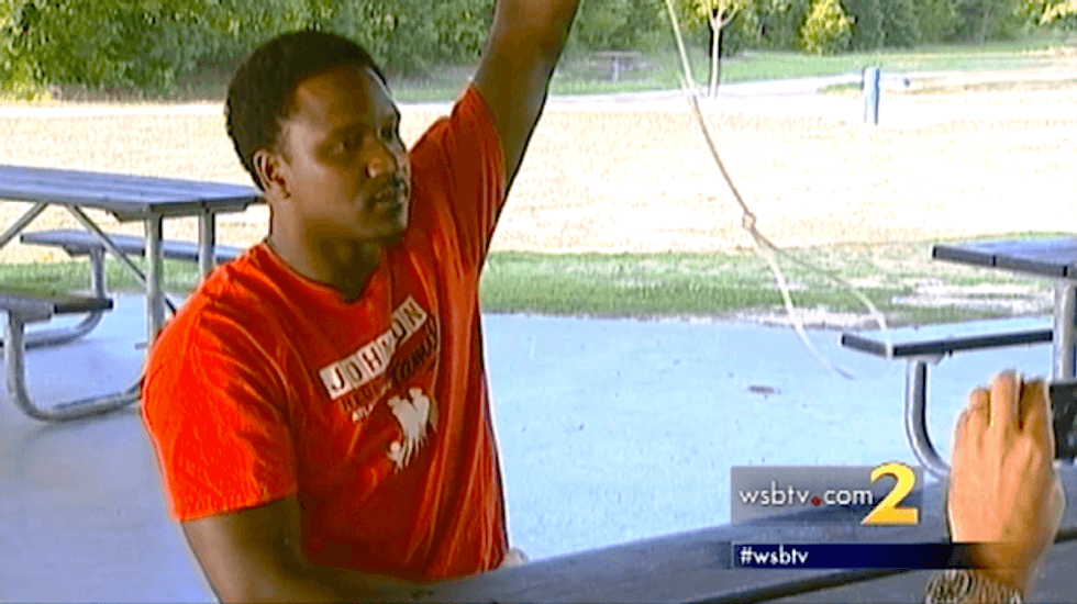 A Georgia man claims he was handed a makeshift noose by a UPS driver making a delivery at his workplace.