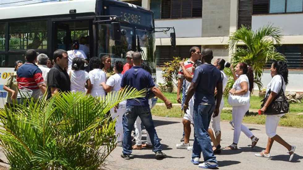 A group of about 100 government supporters, who arrived along with the authorities at the scene in Havana's Miramar district, shouted "Viva Fidel, Viva Raul" as the women were taken away.