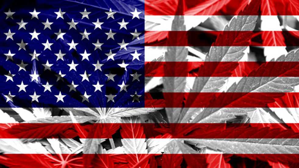 [USA Flag on cannabis background on Shutterstock]
