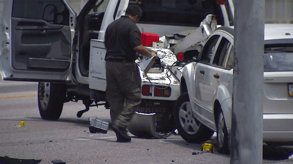 The wounded driver then collided with a car in an intersection, and he was pronounced dead a short time later at an area hospital.