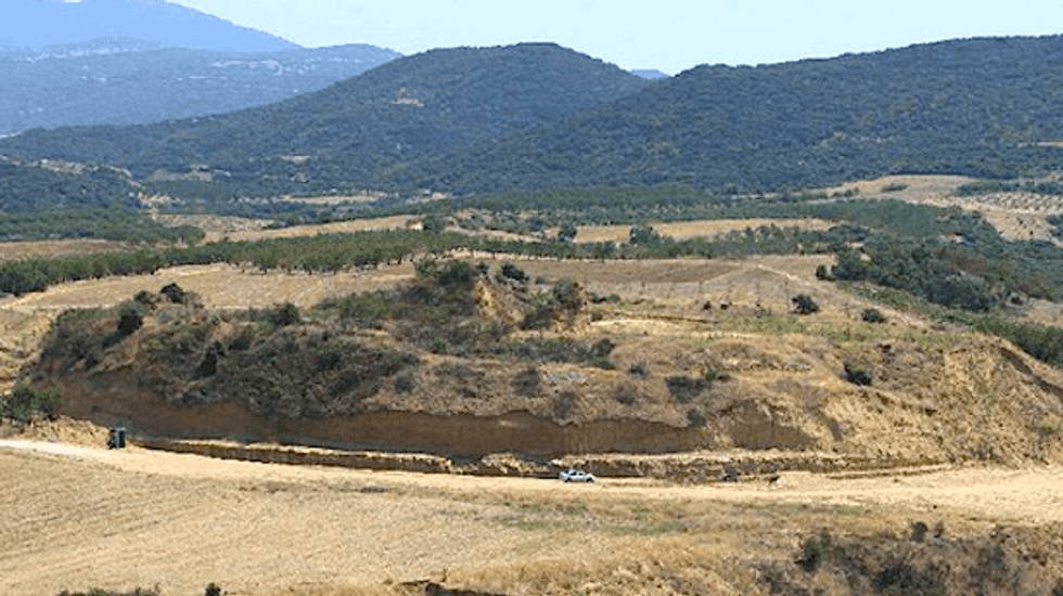 Hidden under a hill at the ancient town, the Hellenistic-era mound containing the tomb has a near-circular circumference of 497 meters, Samaras said.