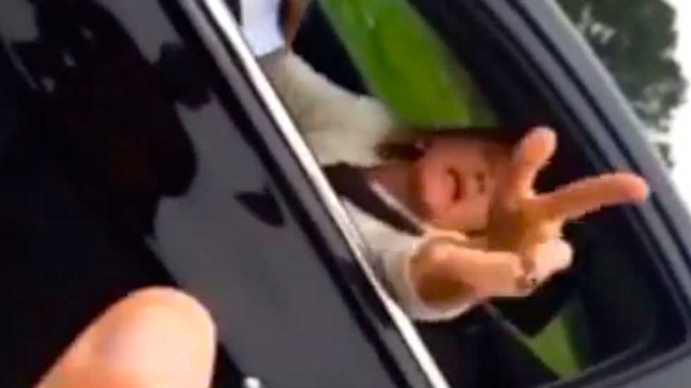 As the man continued to attempt to calm the woman down, asking her "Why are you so full of hate?", she gets out of the car and charges at him as he backtracks, before she returns to her car and drives away, almost hitting the man with her car.