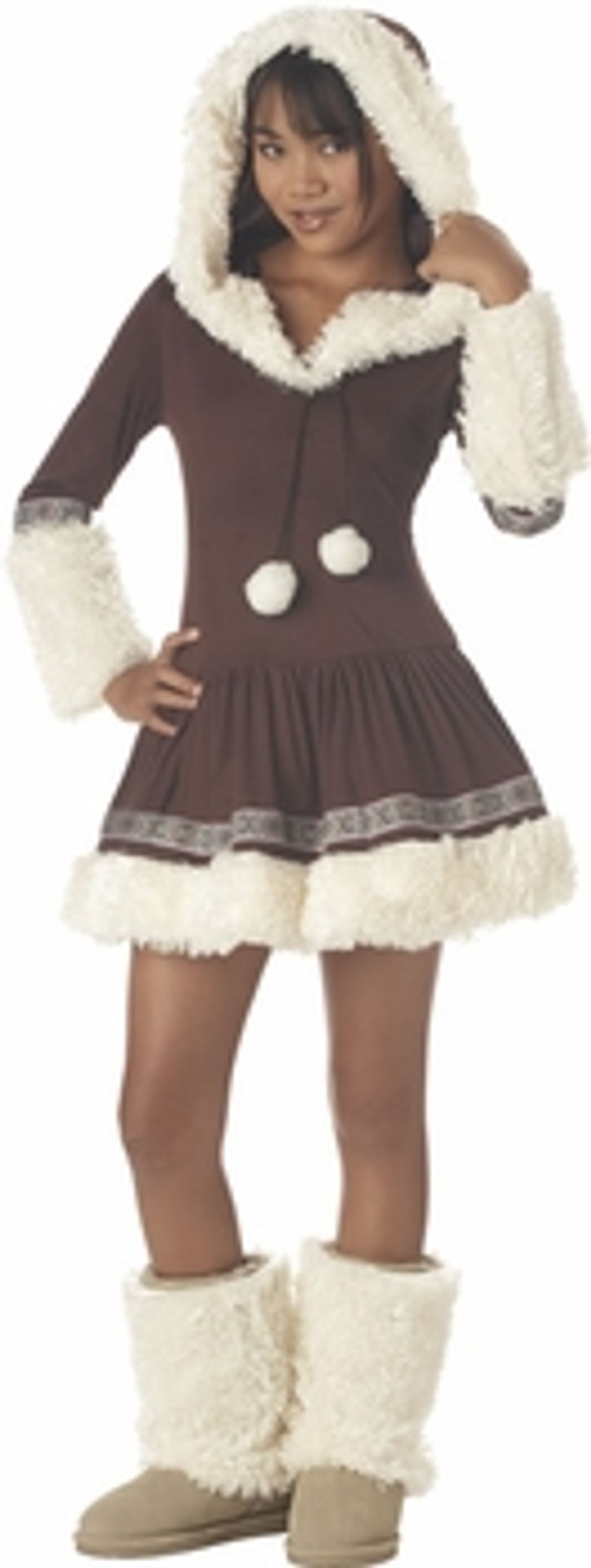 Bundle up, with our tween Eskimo Princess costume. Faux fur lined dress makes for a cozy, cute look. For a cool group costume idea see our other international costumes.