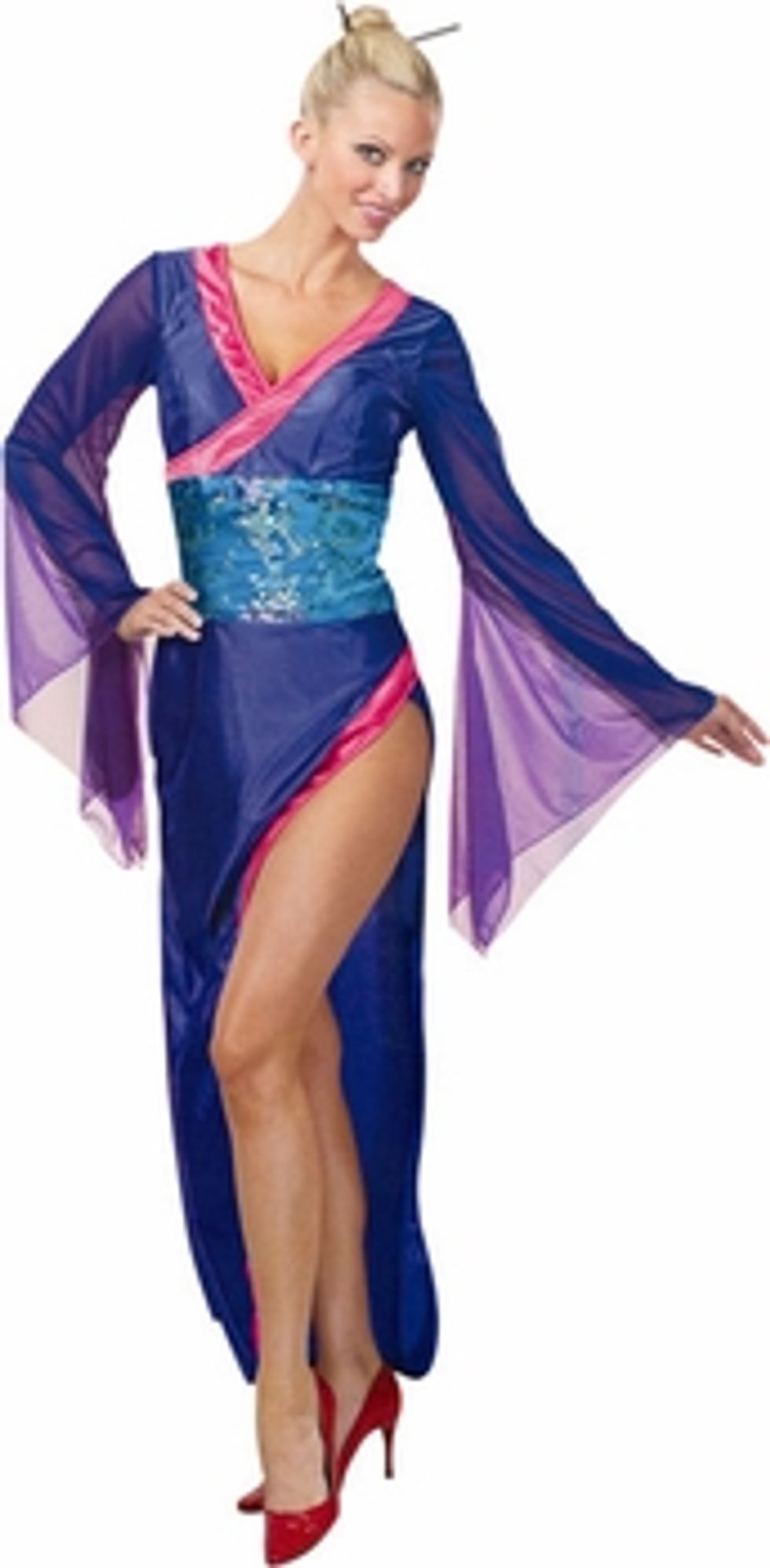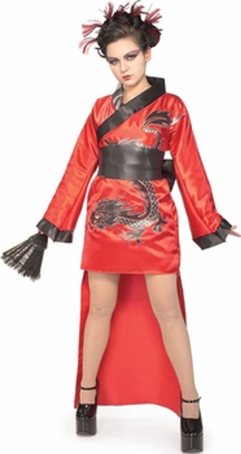 So, maybe you want to be an Asian geisha this Halloween. And maybe you don't want to be as modest as, say, the oh so matronly Teen Dragon Lady (see above.) Well this costume is perfect for you!