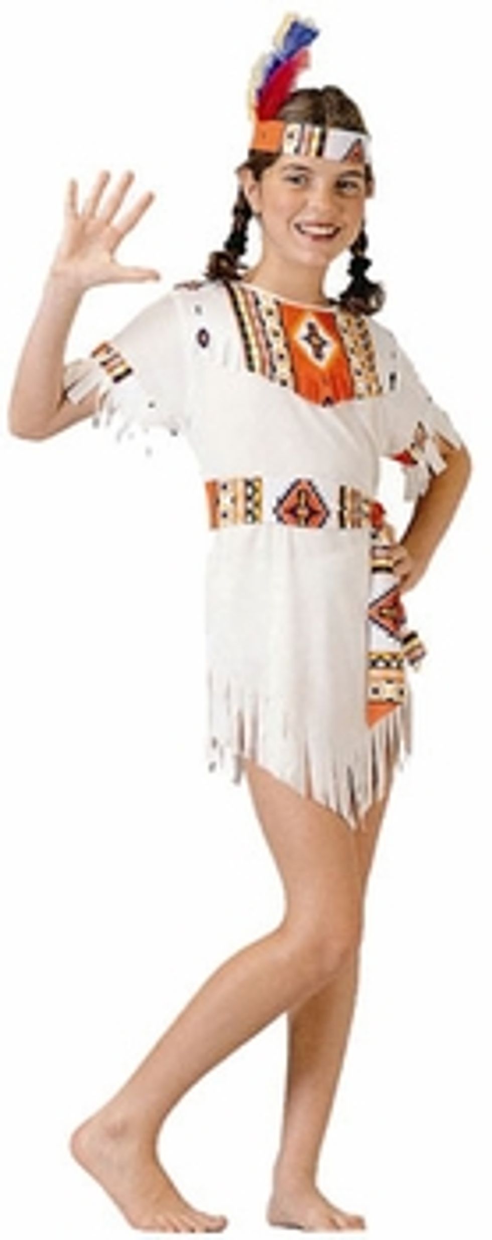 Our child's indian bride costume includes a dress, headband and sash.