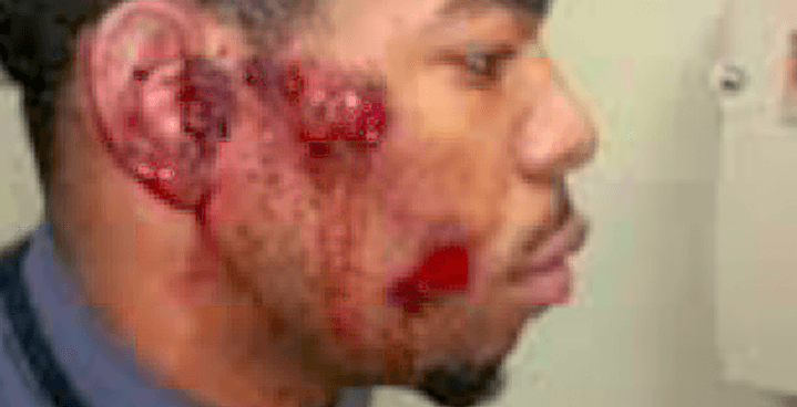 As his car began to fill with smoke, Swink ran from the vehicle, only to be tackled and beaten bloody by officers who mistook him for Simmons, who had 17 separate warrants out for his arrest.