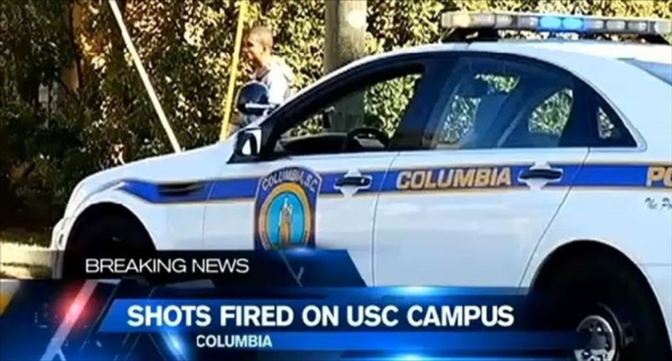 The State reported that all buildings at the university had been locked down and that Governor Nikki Haley cut a news conference short on Thursday because of security concerns.