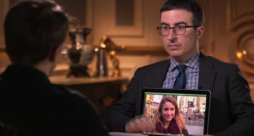 HBO's Last Week Tonight took its act on the road this week as host John Oliver traveled to Russia to interview America's most famous whistleblower, Edward Snowden, where he suggested the American expat stoke fears about the NSA looking at "dick pics" in order to generate concerns about government surveillance at home.