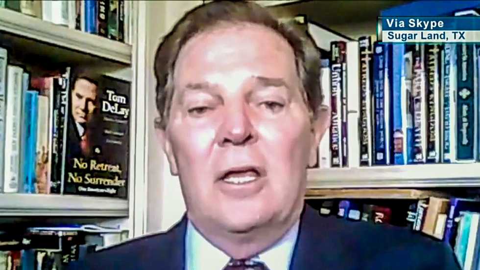 "This is the result of the gay agenda," DeLay told Newsmax host Steve Malzberg on Monday. "We're now seeing what the gay agenda is all about. Our religious liberty, as you know, Steve, is the bedrock of our country. As it's described in the Declaration of Independence, that we get our rights from our creator, somebody bigger than us. And from that, we get truth, with the values by which we live. And from that, we're good people that can govern through the Constitution."