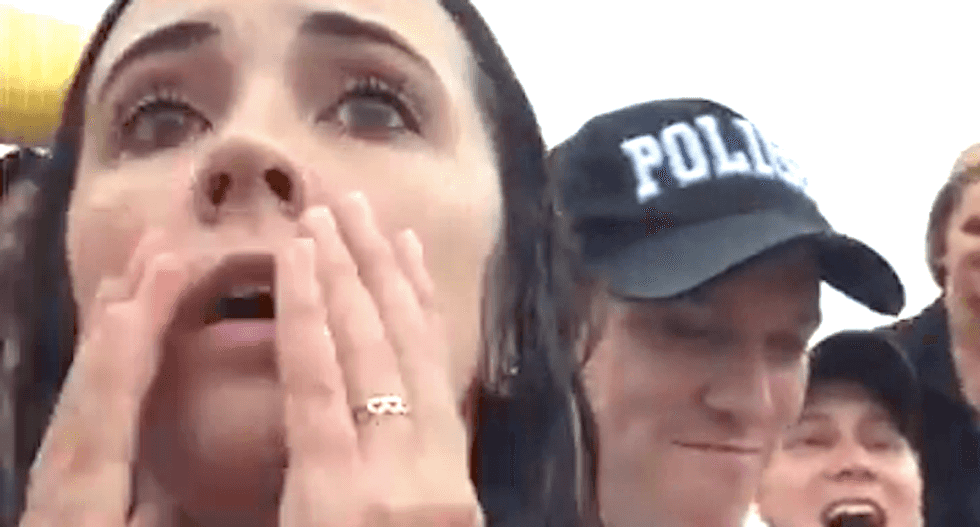 All three officers then walk away as the unidentified white woman celebrates with friends.