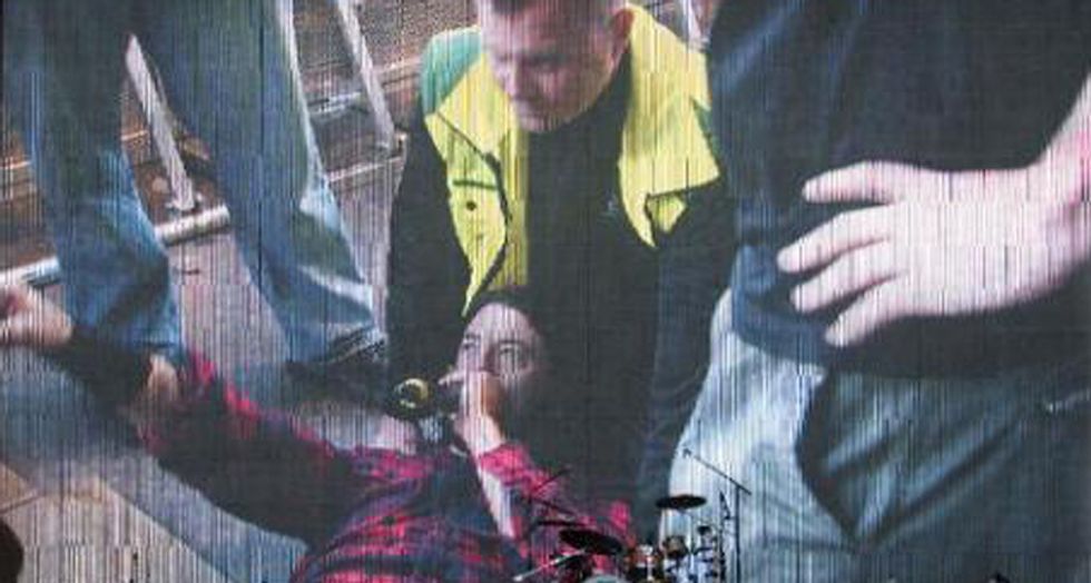 But instead of cutting short the show, a recumbent Grohl at first jokingly sang the David Bowie and Queen song "Under Pressure" and vowed to press on.