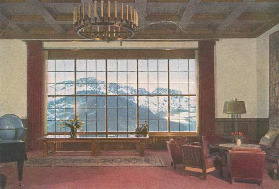 [caption id="" align="alignnone" width="668"] A 1936 postcard presents a view of the Alps from the Berghof’s Great Hall. (Heinrich Hoffmann Collection, Picture Archive, Bavarian State Library)[/caption]
