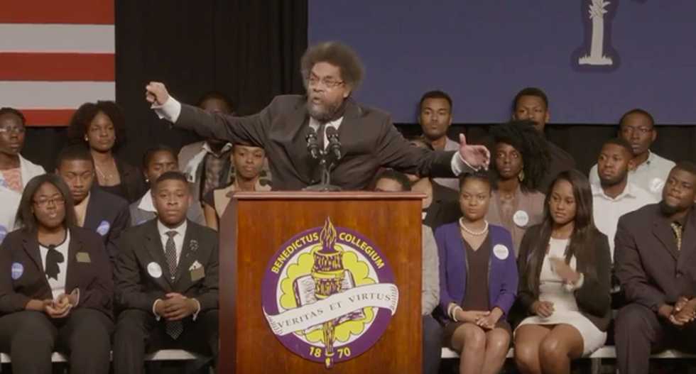 Activist and academic Cornel West, who recently endorsed the upstart candidacy of Sen. Bernie Sanders (VT-I), put his boots on the ground for the progressive candidate by appearing with him at historically black Benedict College in South Carolina.