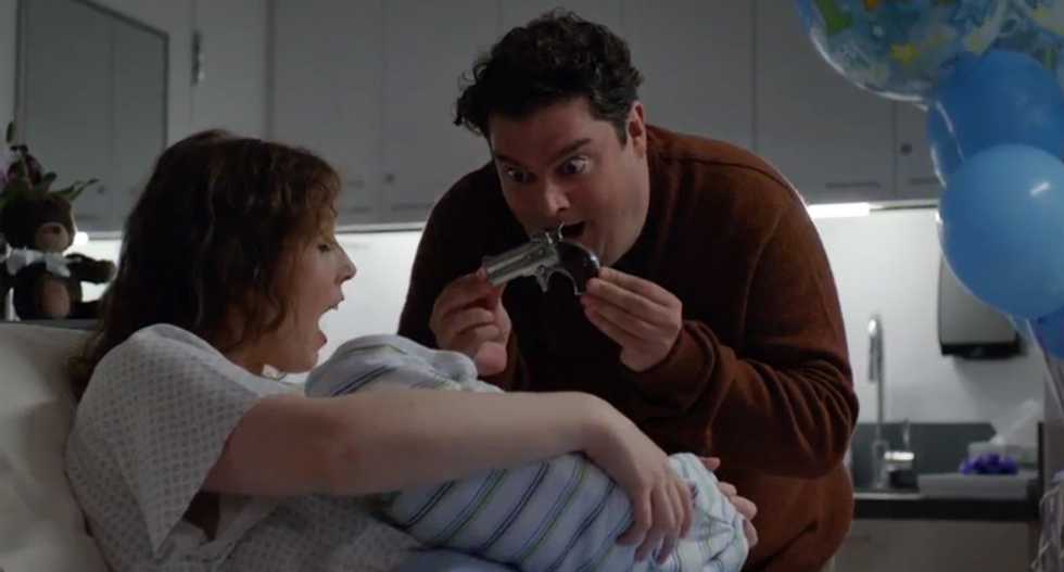 In the ad we see various moments in people's lives -- first love, the birth of a child, inter-generational connections -- made better by the introduction of a gun.