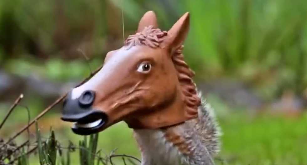 You know the horse mask well and you know you love it, but imagine one on a squirrel. Actually, you don't have to imagine it, just check out this