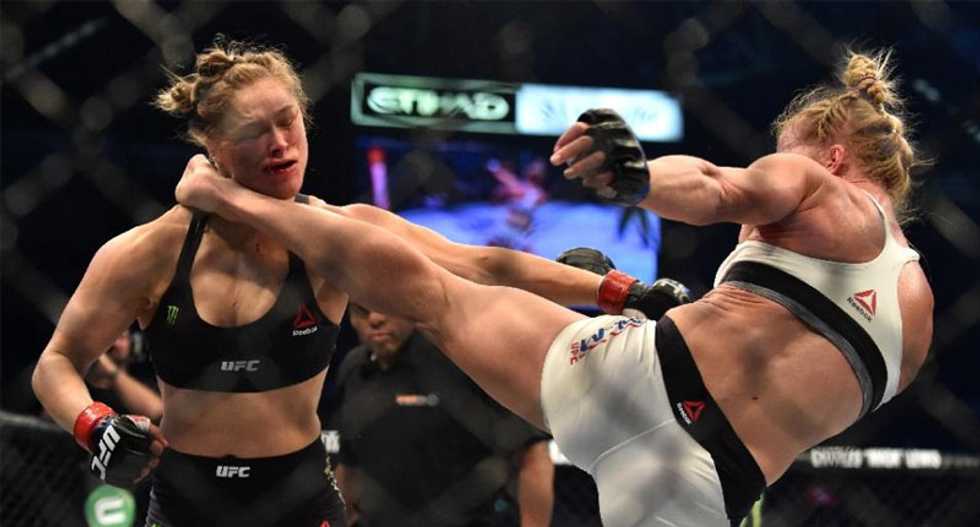 Rousey, tagged the world's most feared female prizefighter, was hospitalised after Holm sent her crashing to the canvas in the second round of their bout with a savage kick to her jaw.