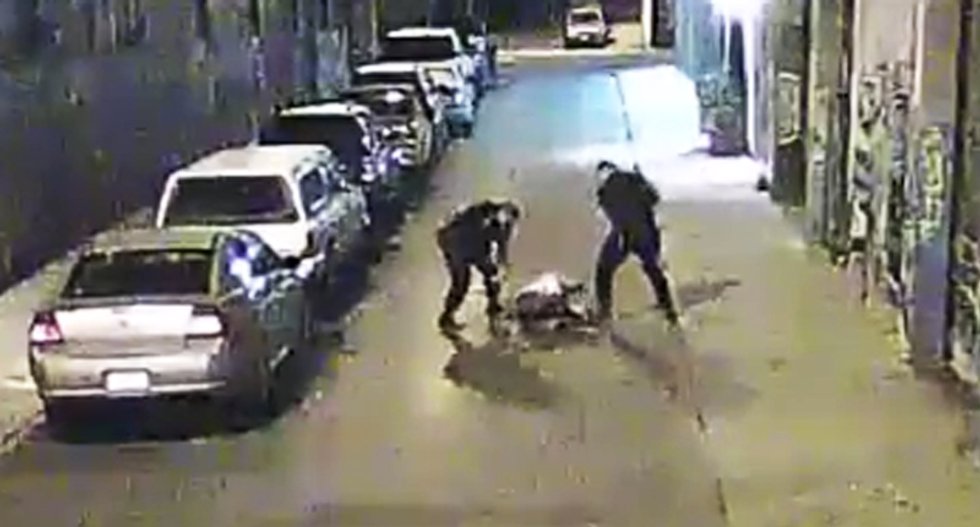 Two San Francisco cops beat man with batons as he curls up in a fetal position - screencapture