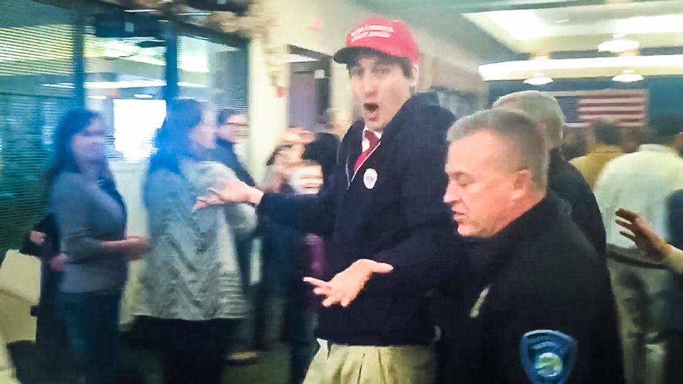 A Donald Trump supporter was kicked out of a rally in Windham, New Hampshire on Monday after demanding that the candidate tell more "jokes."