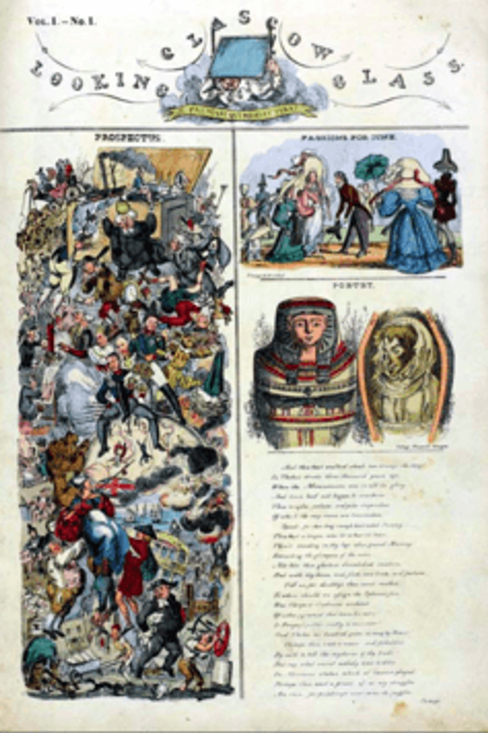 If you’ve no idea, don’t feel too foolish. It wasn’t even recognised by experts until a few years ago and is still debatable today. But long before Viz, The Beano, Eagle and even Punch, I can answer with reasonable confidence that the accolade goes to the Glasgow Looking Glass of 1825.
