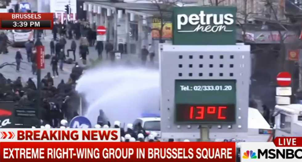 JUST IN: Police fire water cannon after tensions rose between protesters near #Brussels square. https://t.co/WW598sDJfk