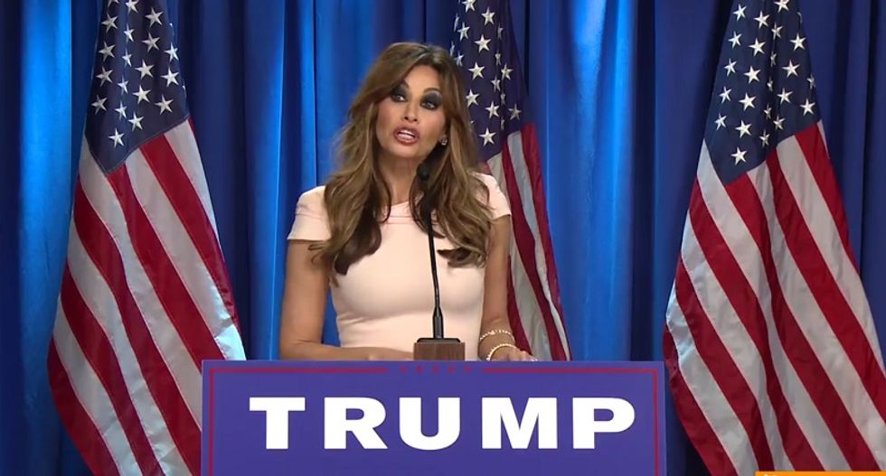 In a hilarious send-up of GOP presidential candidate Donald Trump's tendency to trot his wife, Melania, out on the campaign trail, Funny or Die made a sketch starring Gina Gershon as Mrs. Trump, a Slovenian model.
