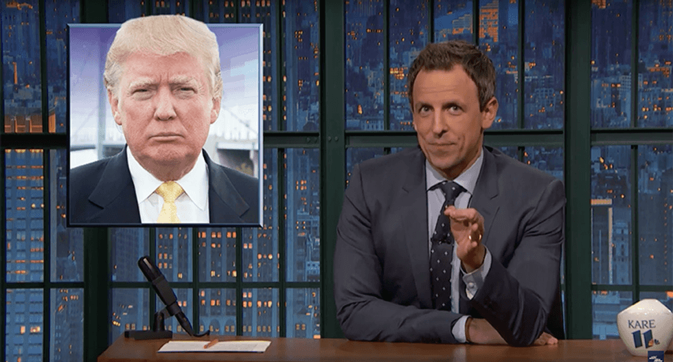 Colorado is still the worst blunder for Trump, however. Delegates were all assigned a number and were allowed to give a speech less than 30 seconds. One man just repeated his name and "Trump conservative" over and over before asking for support. So what's Trump to do? He can actually buy the delegates off because it turns out that may not be illegal. "That's how crazy a contested convention could get," Meyers said. "As one election law specialist told CNN, 'I think the legal term is sh*t show.' A term, of course, originated in the famous Supreme Court case Clusterf*ck v. Ass Over Handlebars."