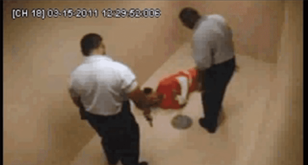 All of this was captured on the video below. But the deputy responsible remains an employee of the county jail, no charges have been filed and his boss -- who helped cover up the homicide -- ran unopposed in his last election. Republican Sheriff Larry Rollins even lied to reporters, claiming that the death was unavoidable.