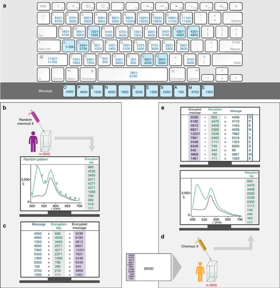 It all rests on fluorescent molecules that can be made to give off different wavelengths of light when they come into contact with certain chemicals. Measuring the wavelengths gives you a code that you then need to decrypt to read the message. The scientists built the molecules that contain the code in their lab but the chemicals could be familiar products such as a particular cola, instant coffee or mouthwash.