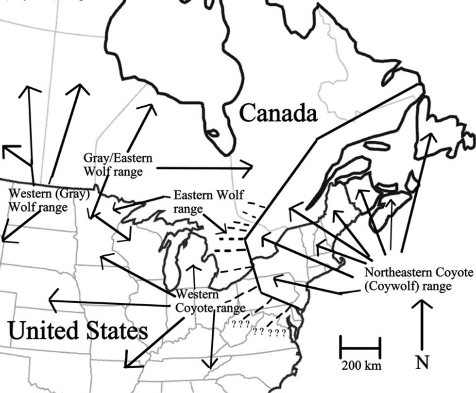 Coyotes from the Plains intermixed with wolves in Canada about 100 years ago and their descendants have colonized the eastern U.S.