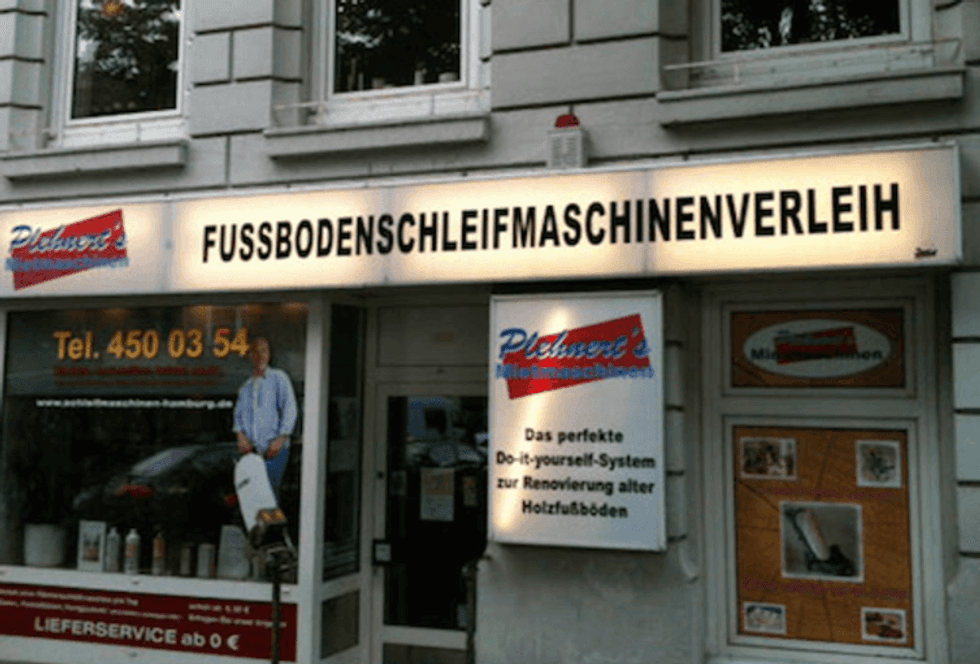 German allows for lengthy noun chains, like the sign for this store advertising ‘Floor-sander rentals.’