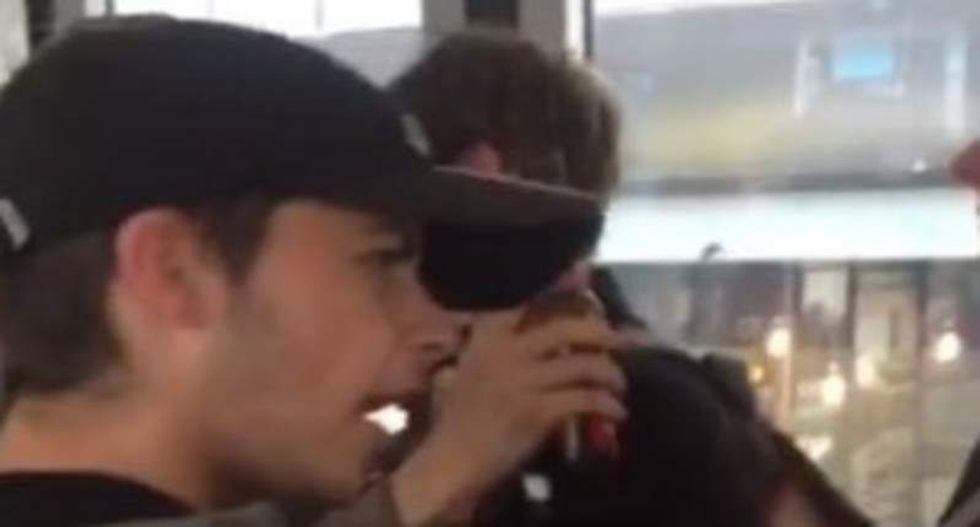 "Get deported," one of the suspects can be seen saying while standing in the back of the tram. "You're a muppet. Get off the tram now." When the victim asks how old he is, the suspect responds, "Get off the tram now. Bro, I'll waste you. I'll waste anyone. Don't chat sh*t when you're not even from England, you little f*cking immigrant."