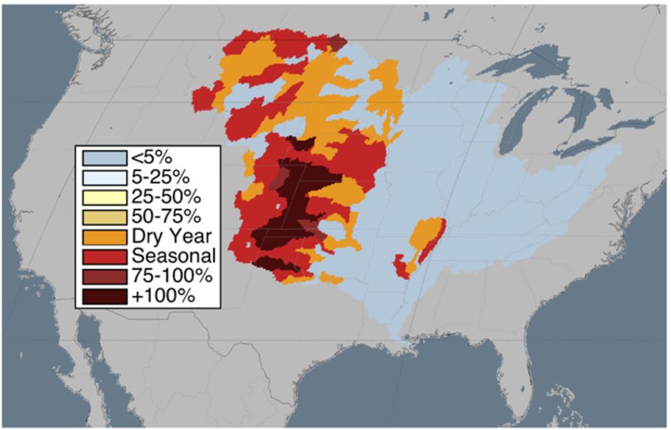 We found that globally, just two percent of watersheds use more than 75 percent of their total renewable water each year. Most of these places depend on fossil groundwater and irrigate heavily; they will run out of water.
