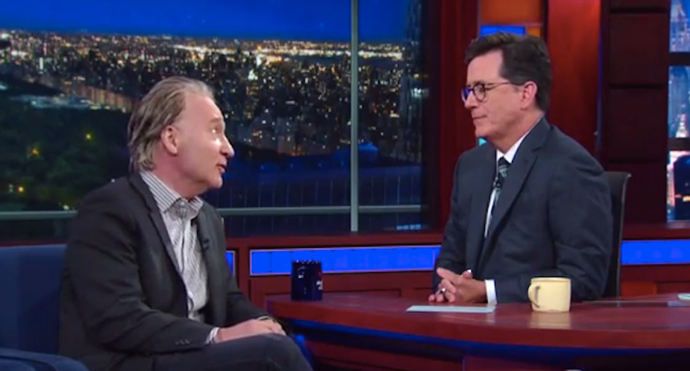 Watch portions of Maher's appearance posted online by The Late Show With Stephen Colbert: